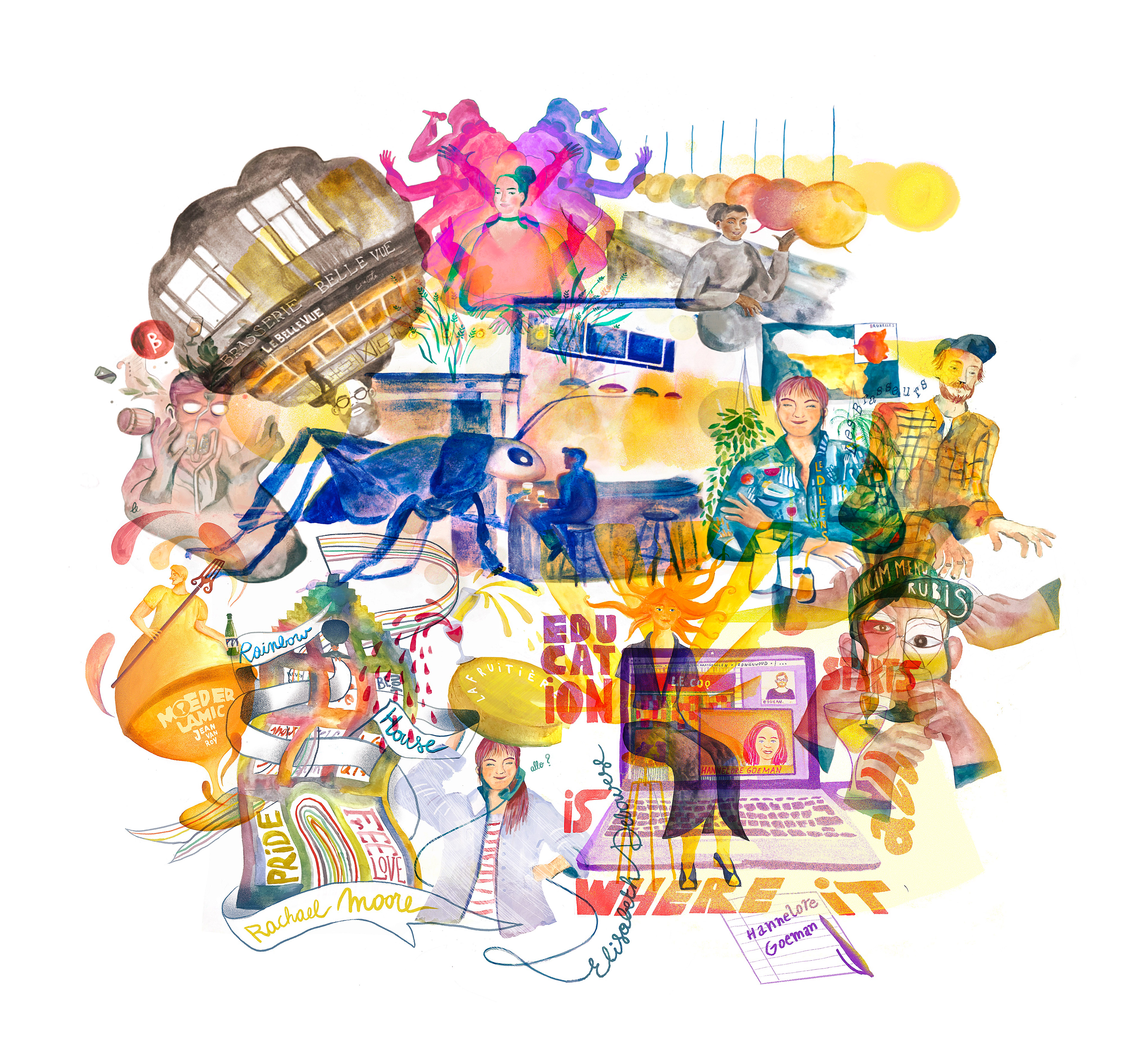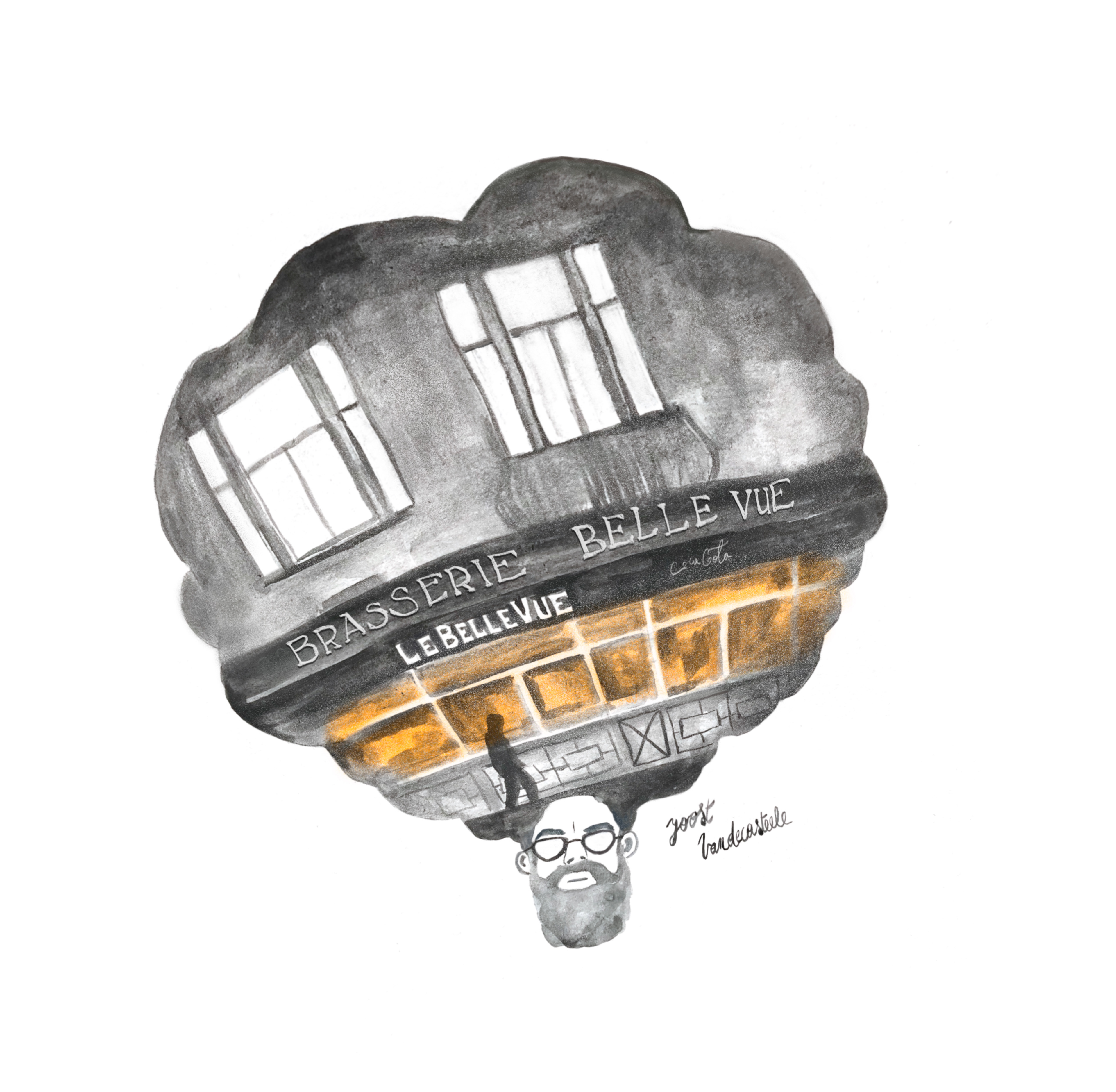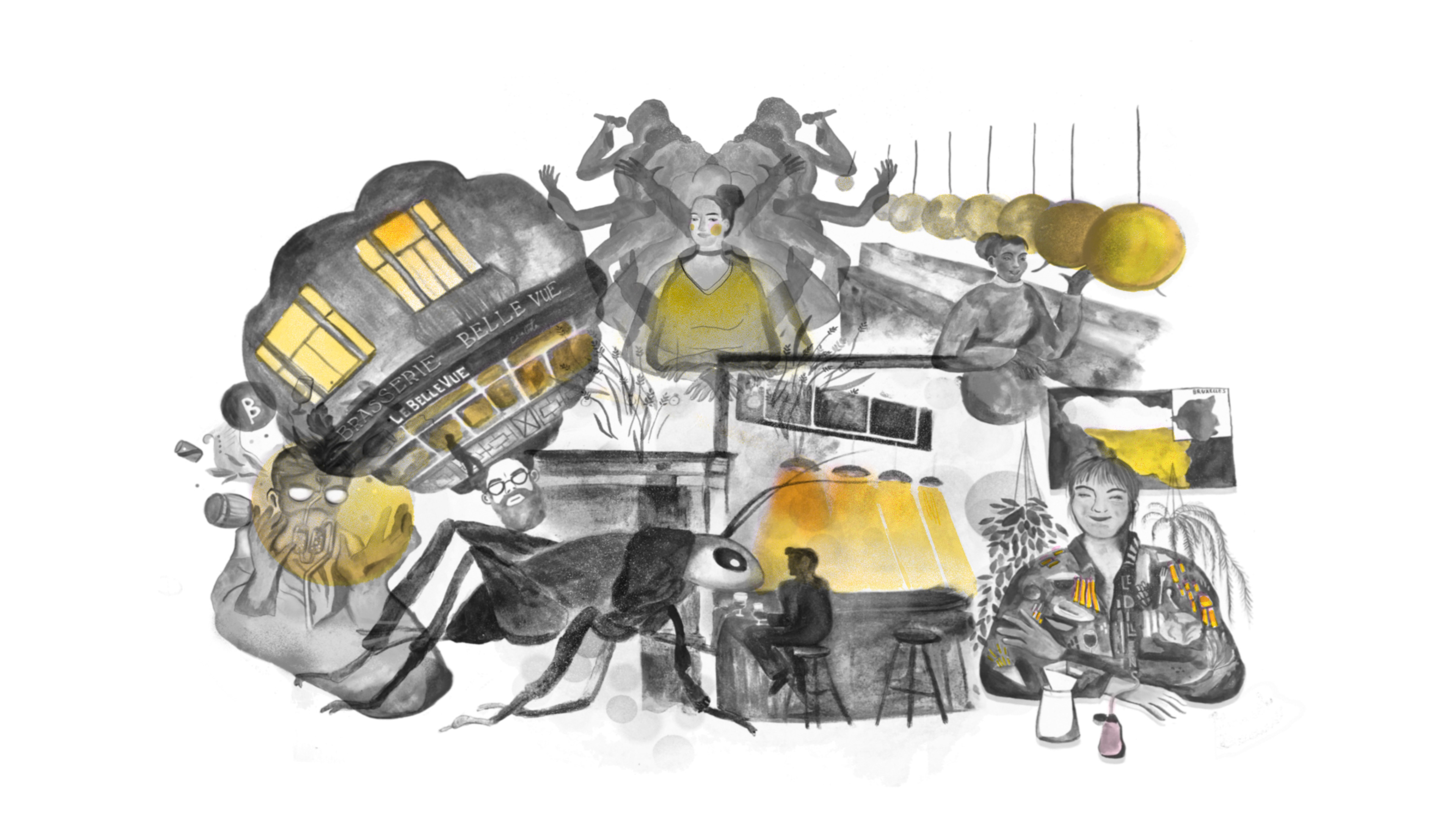 Each drawing is a portrait of a guest in the Brussels beercity podcast. They are interviewed in their favorite bar and speak about the city they live in, its bars, its life and its beers.