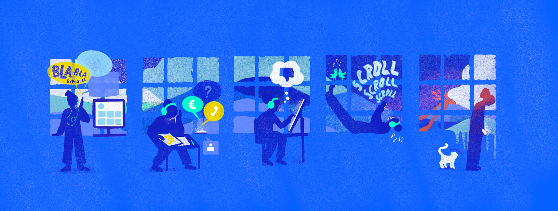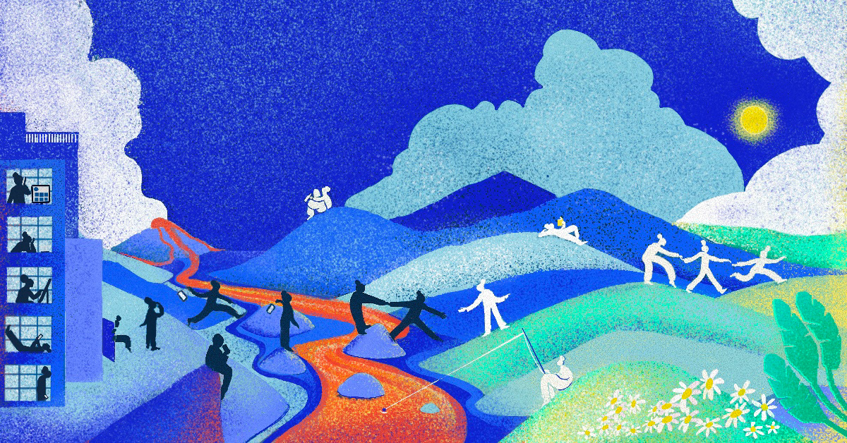 Illustrations for an article by DC Flanders, about mental health among creative entrepreneurs and how to protect their interests and well-being.