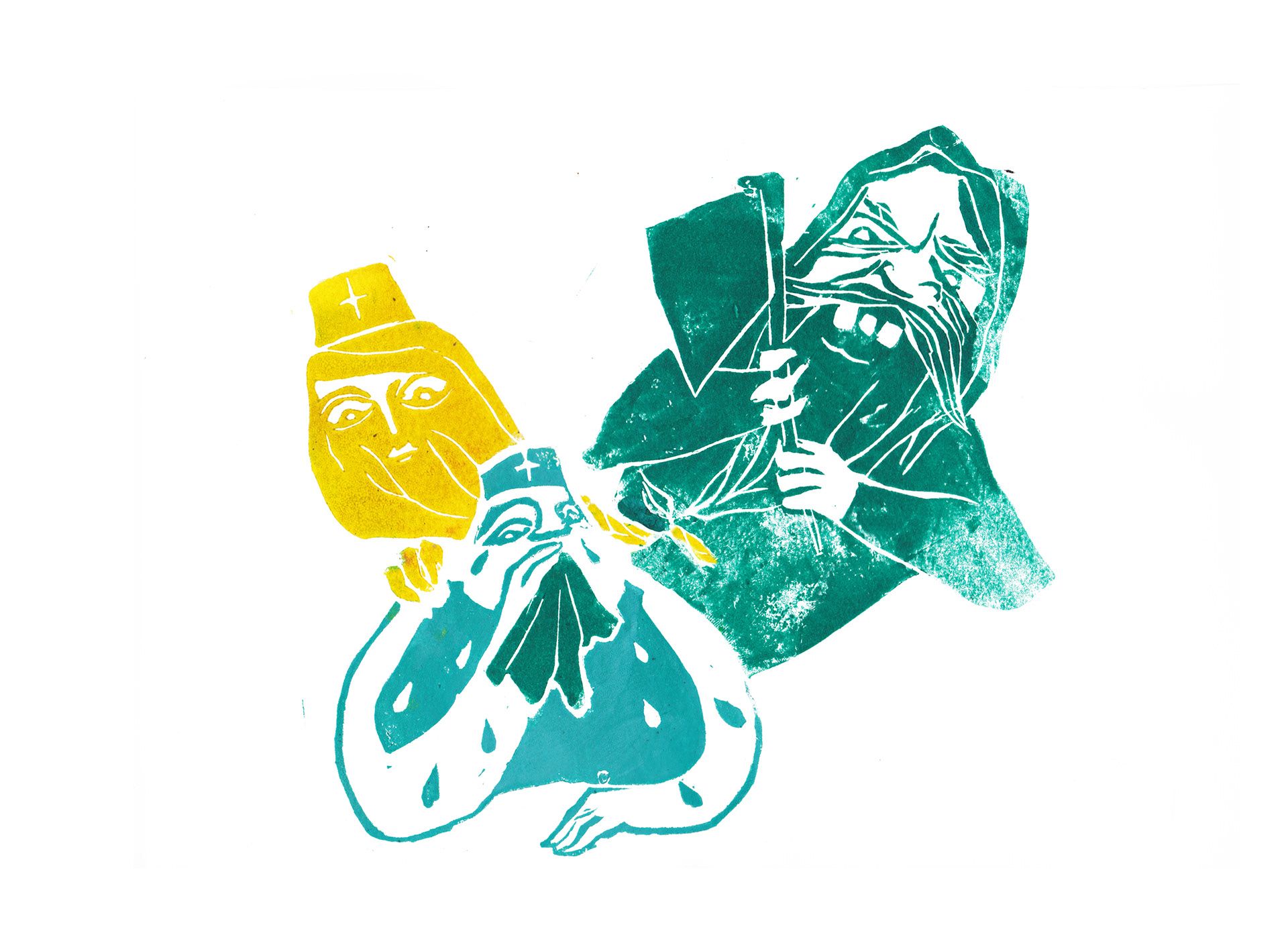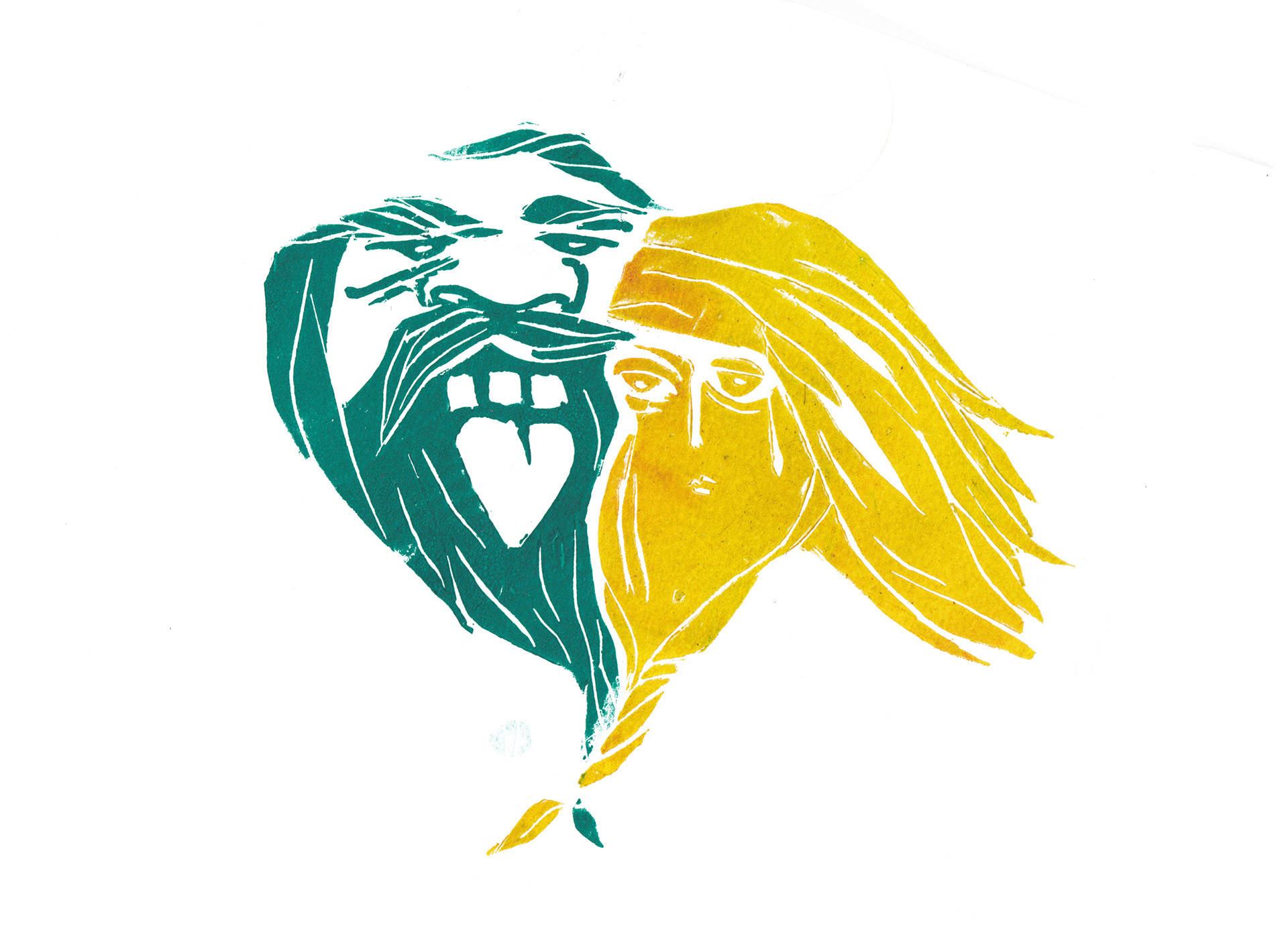 Three linocuts for the shortstory 'De vrouw met de Baard' by Belgian writer Annelies Verbeke.